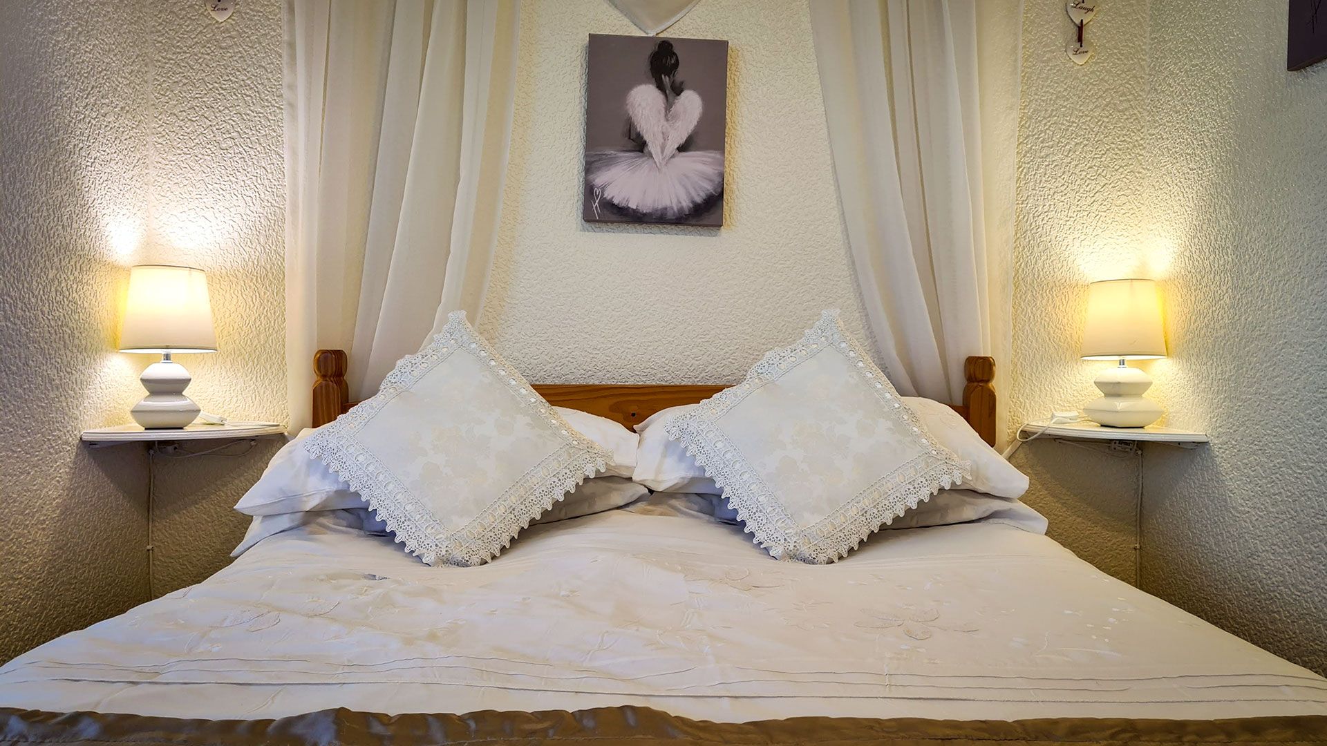 This is a quiet small clean light double room on the first floor ( approximately 14 steps). This room is to the rear of the building which is tastefully decorated.